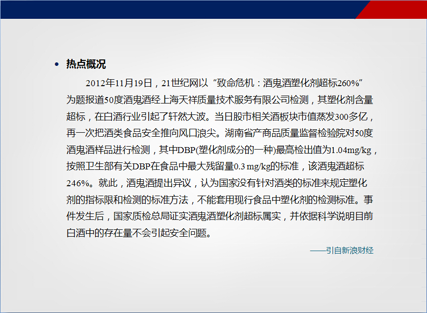 食安热点 2012-12 白酒“塑化剂超标门”