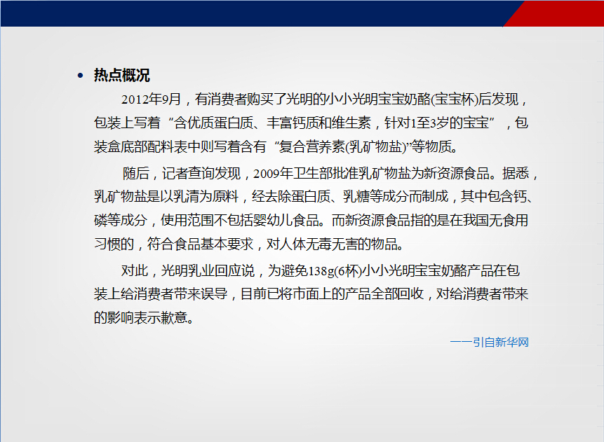 食安热点2012-10 “光明奶酪宝宝杯被指含禁放物”
